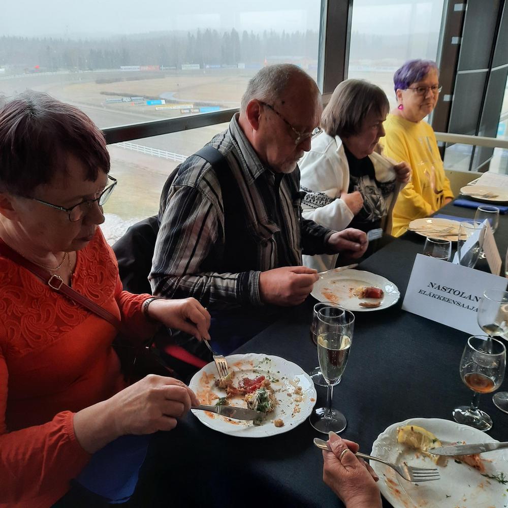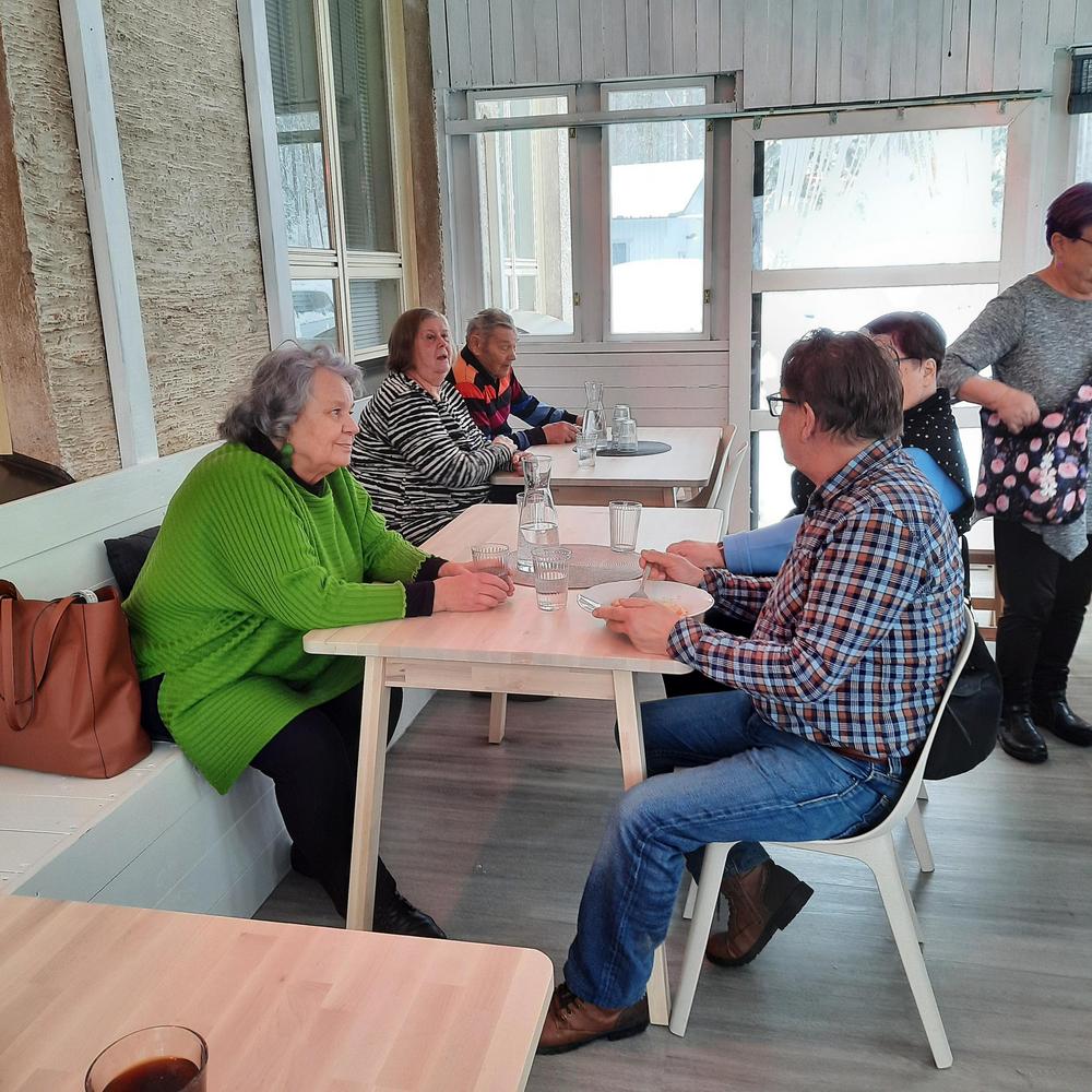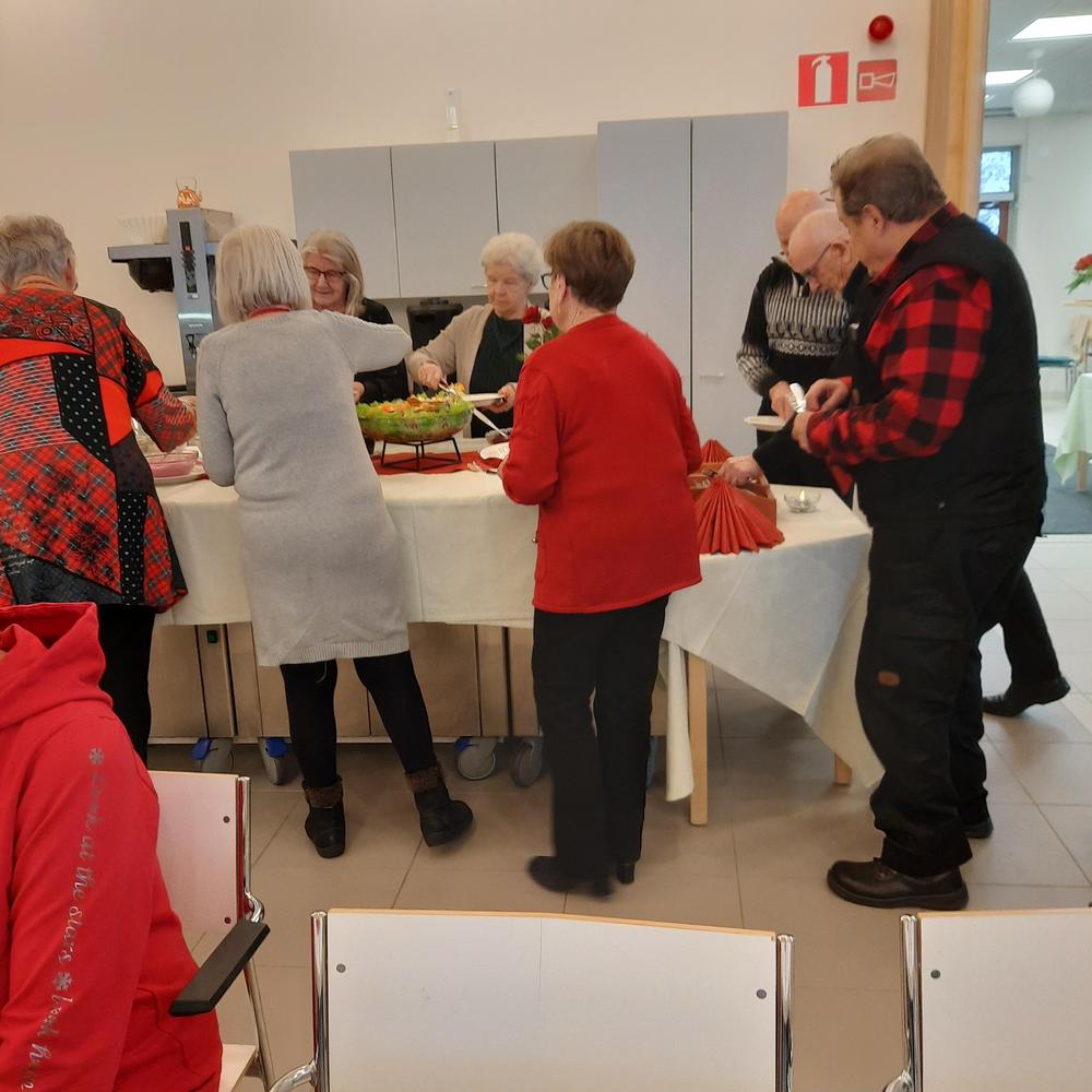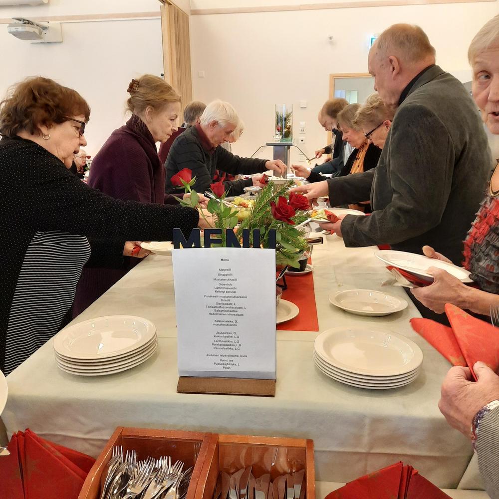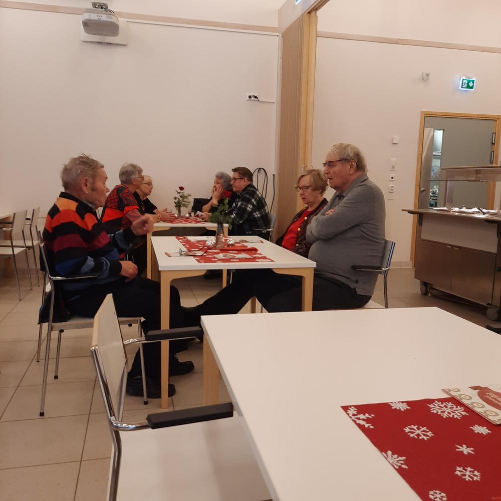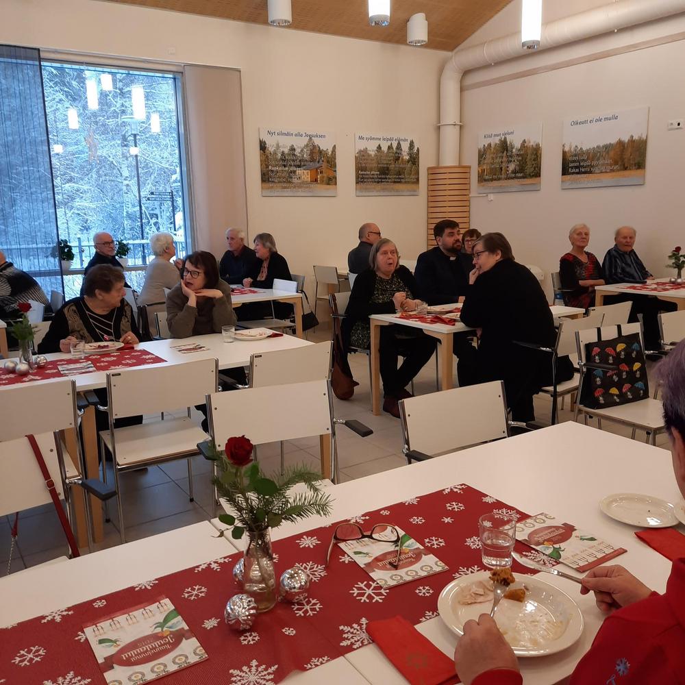 Kokoonnuimme jo perinteisiin tulleeseen joulunajan ruokailuun ja "pikkujouluihin" pienehköllä, mutta sitäkin aktiivisemmalla porukalla srk:n Luomaniemessä.